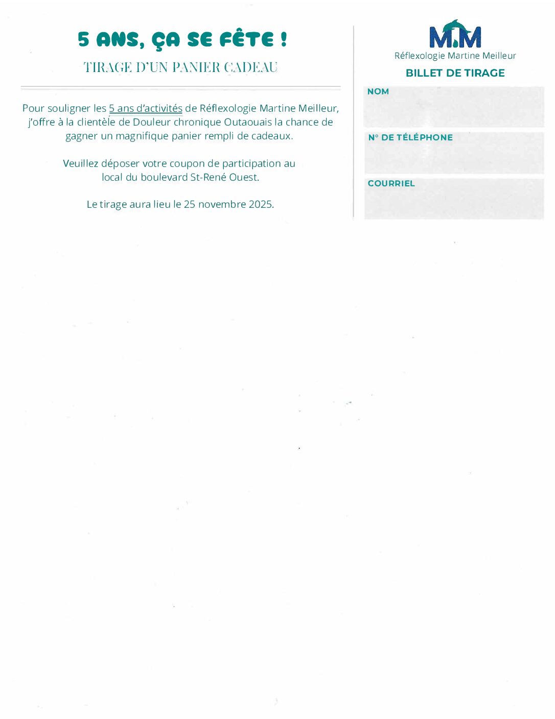 Ce tirage est réservé aux membres de Douleur chronique outaouais Pas encore membre? C’est le moment parfait pour nous rejoindre et profiter d’avantages exclusifs en plus d’un superbe concours " À l’automne 2020, j’ai loué mon premier local — le début d’une belle aventure avec la Réflexologie Pendant tout le mois de novembre, fêtez avec […]